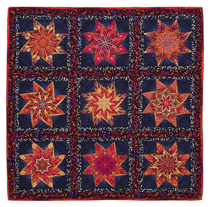 This class is the first day of my multi-day kaleidoscope workshop and is both a process and product class. Students learn all of the unique machine piecing and template techniques I use to create a complex kaleidoscopic image while simultaneously exploring the virtues of bilaterally symmetrical fabric. Needlestars© is a 4-patch block reminiscent of a kaleidoscopic pinwheel